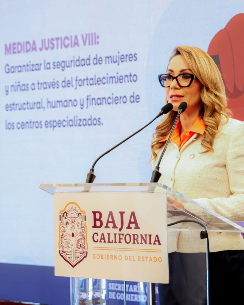 La mandataria explicó que Baja California cuenta con una red estatal de atención integrada por tres Centros de Justicia para las Mujeres ubicados en Tijuana, San Quintín y Mexicali, además de Juzgados Especializados en Violencia Familiar que garantizan atención inmediata y una justicia más efectiva.