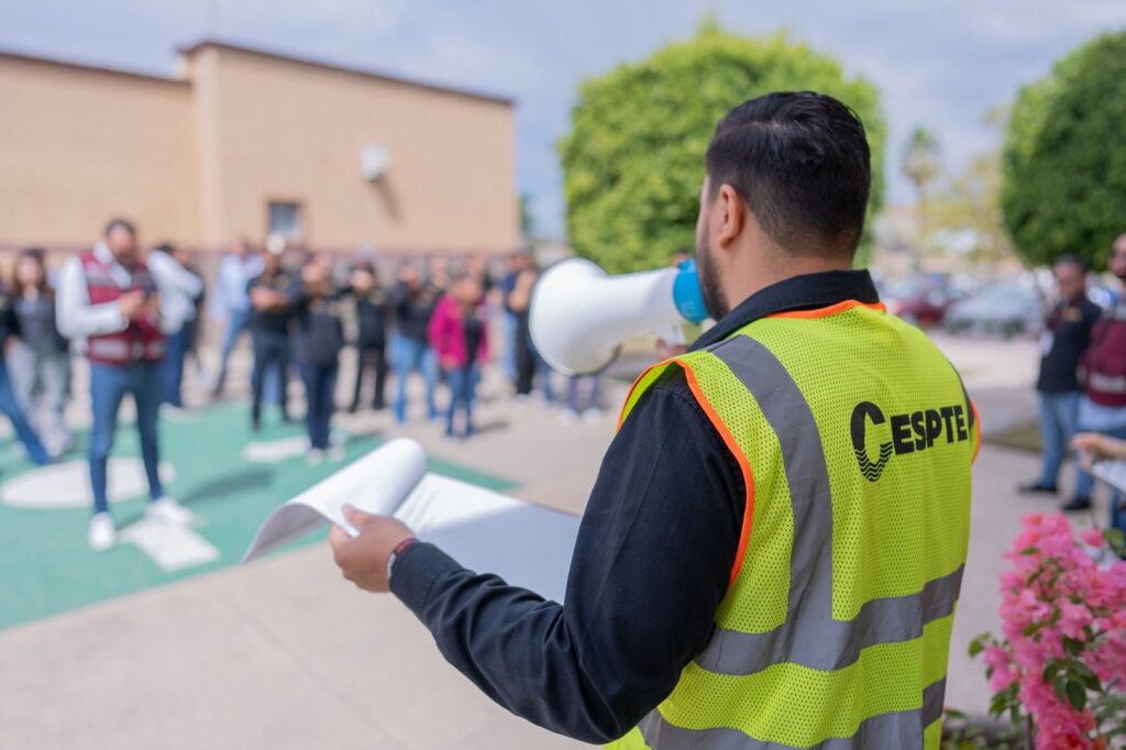 TECATE.- La Comisión Estatal de Servicios Públicos de Tecate (CESPTE) se sumó con éxito al Macro Simulacro Estatal 2026 organizado por Protección Civil del Estado, con el objetivo de fomentar la cultura de la prevención y recordar el sismo de magnitud 7.2 ocurrido el 4 de abril de 2010 con epicentro en Mexicali. En punto de las 2:00 de la tarde, el personal del edificio central activó los protocolos internos de evacuación de manera ordenada, bajo la guía de la Comisión de Seguridad e Higiene liderada por ArIh Gallardo, órgano responsable de coordinar las acciones preventivas y salvaguardar la integridad de la institución.