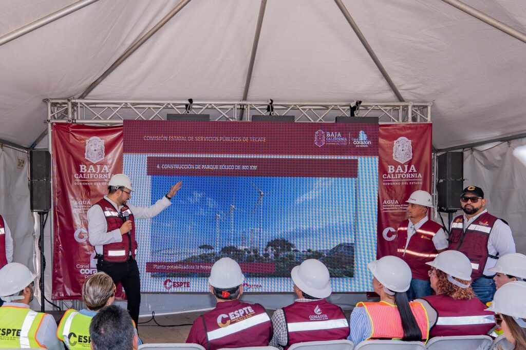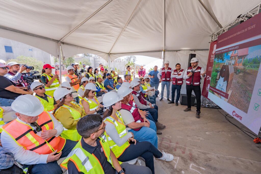 Además de supervisar la obra, Alex Castro expuso 5 temas que beneficiarán el rumbo del agua en Tecate donde presentó a las y los asistentes el Proyecto de Rehabilitación y Ampliación de la Planta de Tratamiento de Aguas Residuales de Tecate, cuyo diseño contempla un nuevo método de tratamiento mediante bio‑reactor de lecho móvil (MBBR) y un sistema de desinfección por radiación UV. Este planteamiento —explicó— permitirá remediar el 100 % de las aguas residuales, cumplir cabalmente la NOM‑001‑SEMARNAT y generar efluentes aptos para reúso agrícola e industrial.