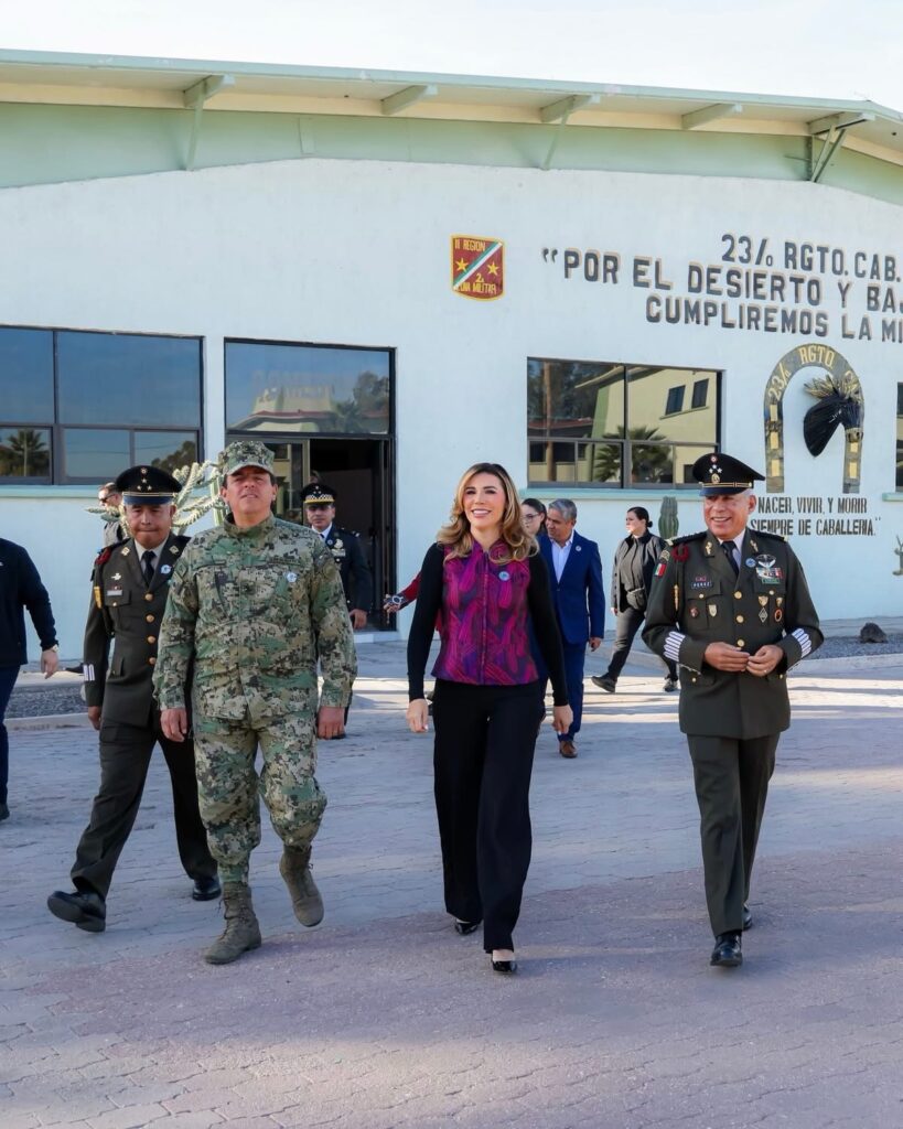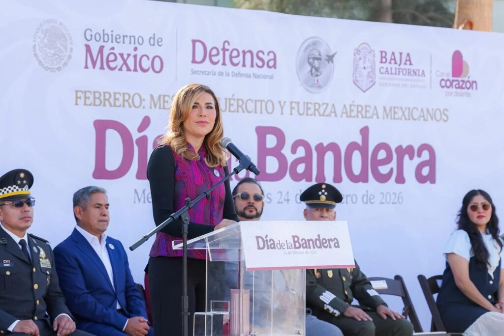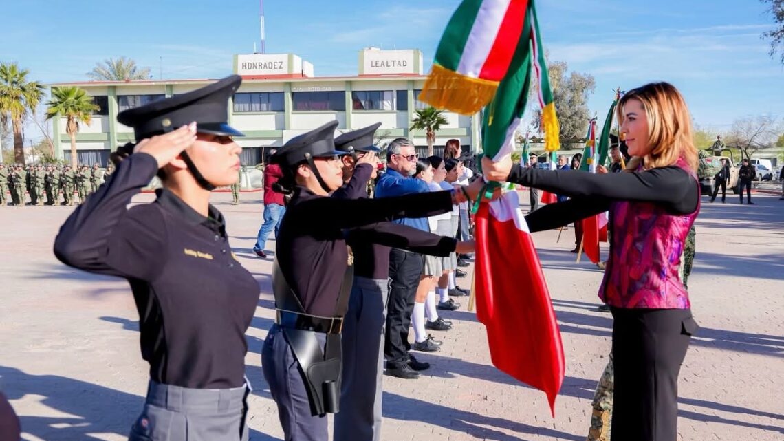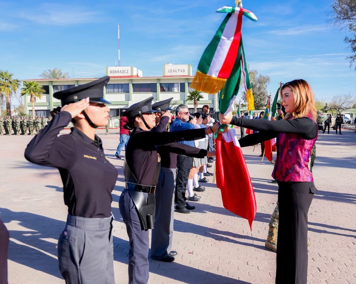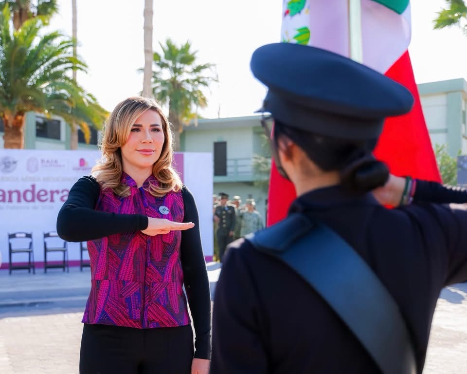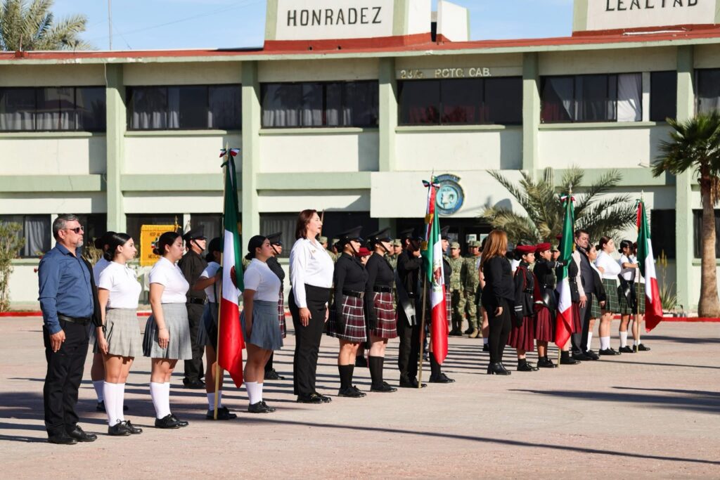 Mexicali.- En una fecha que enaltece la unidad y la soberanía de México, la gobernadora Marina del Pilar Avila Olmeda encabezó la conmemoración del Día de la Bandera, realizada en el cuartel del 23 Regimiento de Caballería Motorizada en la capital del estado, para fortalecer la identidad y el respeto a este lábaro patrio.