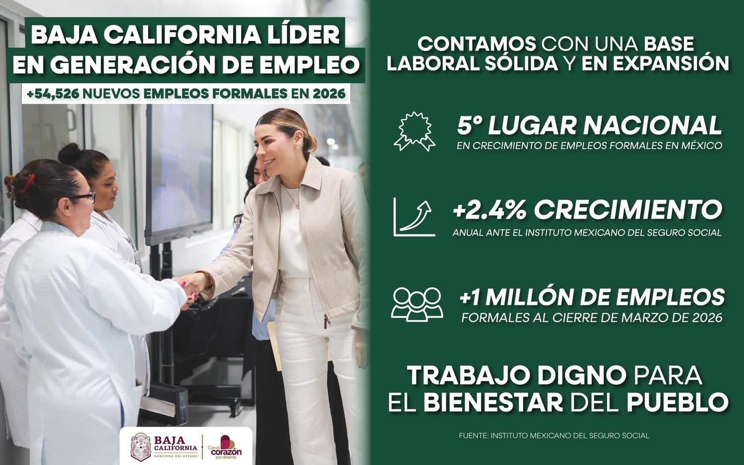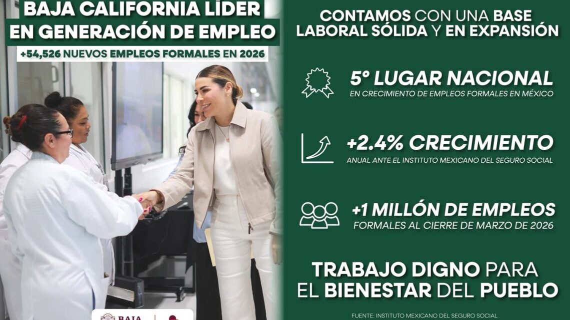 “Estos resultados reflejan que en Baja California estamos generando condiciones reales para que más personas accedan a un empleo formal, con estabilidad y prestaciones”, expresó.