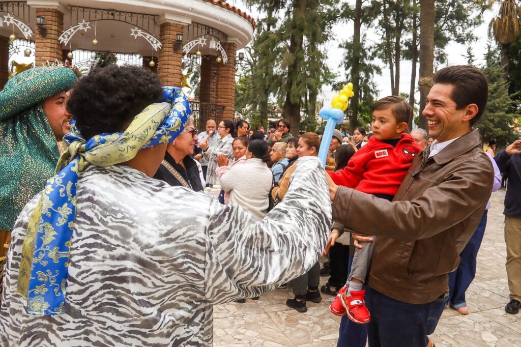 Como parte de la celebración, las y los asistentes disfrutaron de chocolate caliente, mientras que las niñas y los niños recibieron globos y vivieron momentos de ilusión con un espectáculo de entretenimiento que contó con la participación especial de los Reyes Magos Melchor, Gaspar y Baltazar, quienes llevaron alegría y sonrisas a las familias presentes.