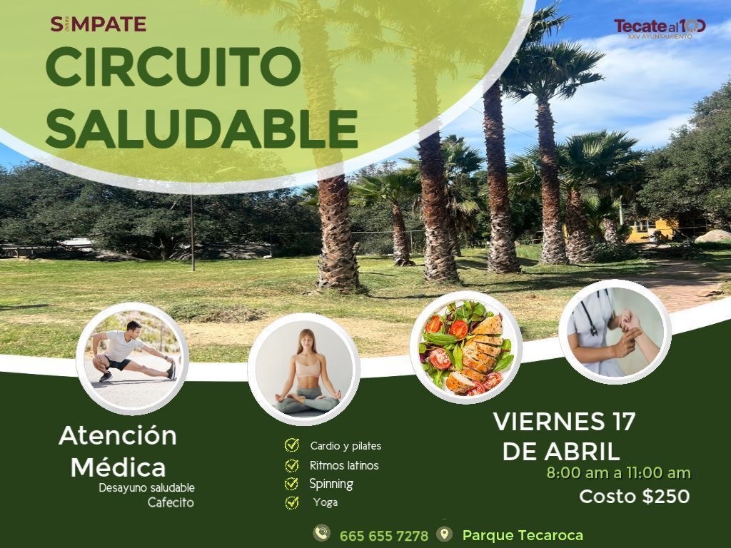Tecate, B.C., a 10 de abril de 2026.– Con el objetivo de fomentar estilos de vida saludables y promover el bienestar integral de las familias tecatenses, el Sistema Municipal de Parques Temáticos (SIMPATE) invita a la ciudadanía a participar en el “Circuito Saludable”, una jornada especial que se llevará a cabo en el Parque Tecaroca.