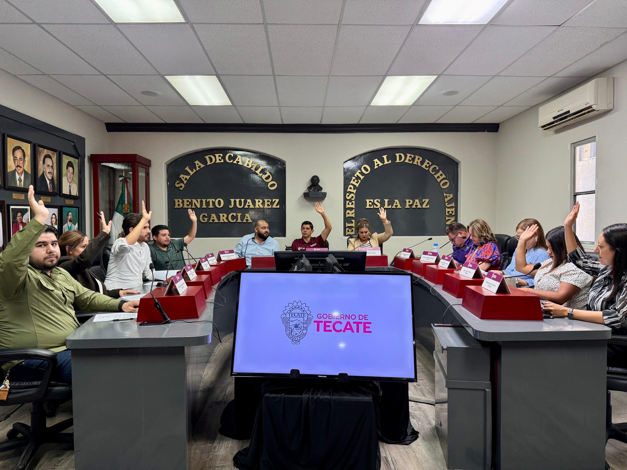 Tecate, Baja California, a 06 de agosto de 2025.- El Gobierno de Tecate llevó a cabo la Sesión de Cabildo número 36 de carácter ordinaria, celebrada en la Sala de Cabildo “Benito Juárez García”, donde se aprobó turnar a la Comisión de Gobernación y Legislación la iniciativa para crear el Reglamento de Operación y Funcionamiento del Consejo de Paz y Justicia Cívica del Municipio de Tecate.