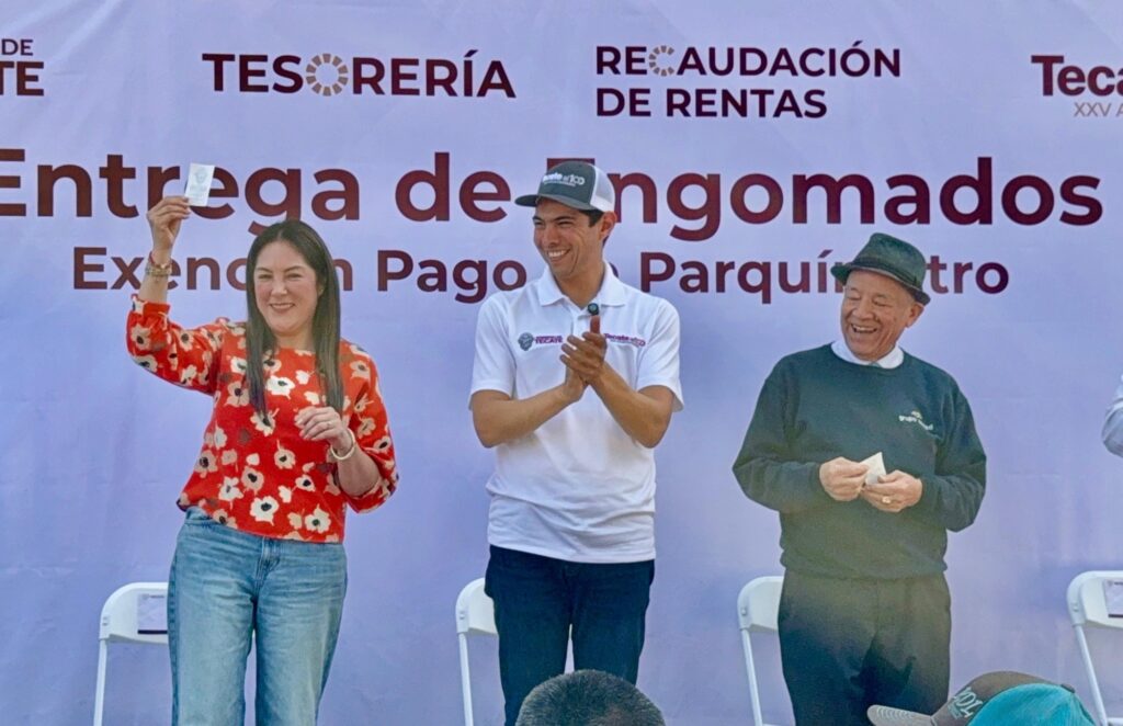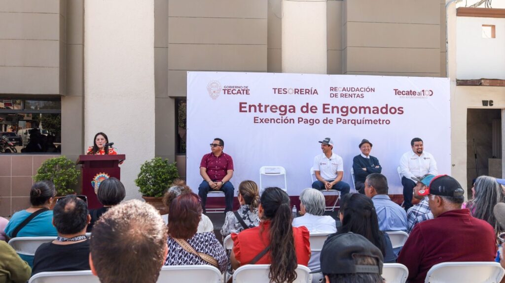 Tecate, Baja California a 28 de febrero de 2026.– El alcalde Román Cota Muñoz encabezó en el Parque Miguel Hidalgo la entrega oficial de los primeros engomados que exentan del pago de parquímetros en la zona centro a las y los ciudadanos cumplidos con su impuesto predial. En esta primera etapa se contempla la distribución de 500 engomados, marcando el arranque formal de un incentivo sin precedentes para reconocer la responsabilidad ciudadana.