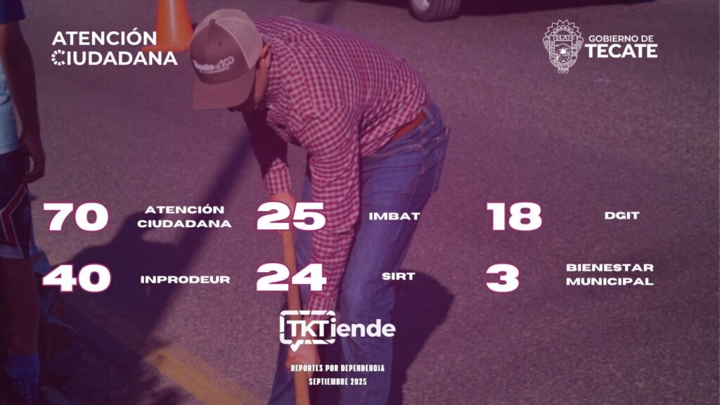 Tecate, Baja California a 10 de octubre de 2025. — El Gobierno de Tecate, a través del área de Atención Ciudadana, dio a conocer el reporte correspondiente al mes de septiembre, en el cual se recibieron 180 reportes por parte de la comunidad tecatense.