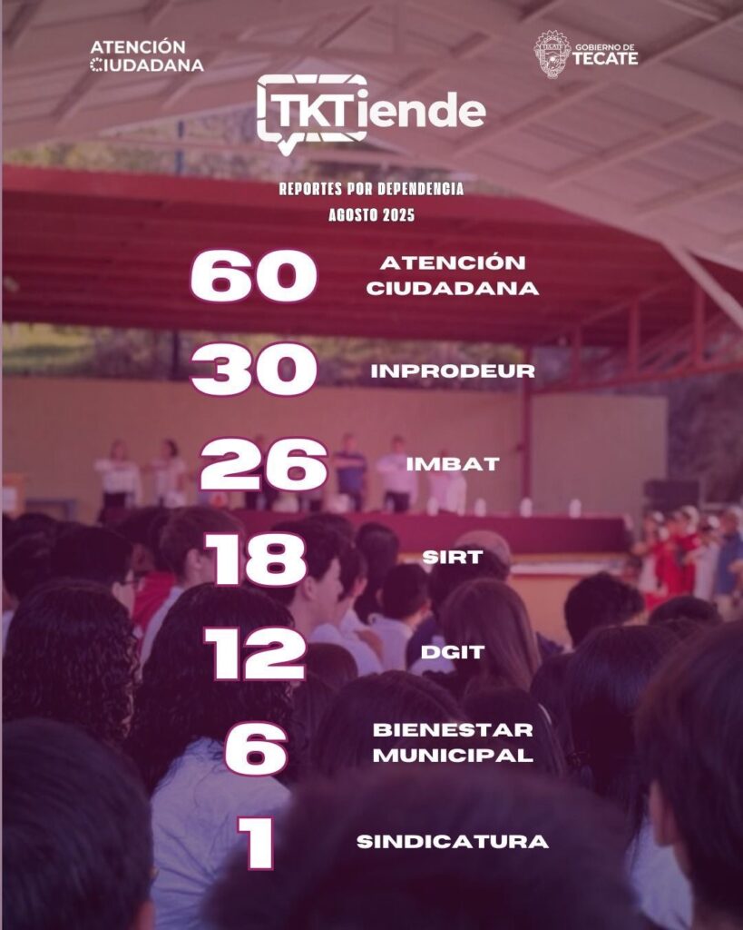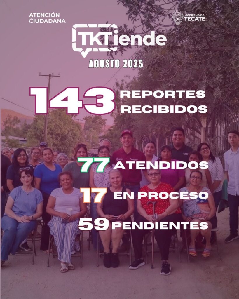 Tecate, B.C., a 08 de septiembre de 2025.- El Gobierno de Tecate, encabezado por el alcalde Román Cota Muñoz, ha dado un paso firme hacia la modernización de la atención ciudadana con la plataforma digital TKTIENDE, que en el mes de agosto se consolidó como una herramienta clave en la transformación del servicio público.