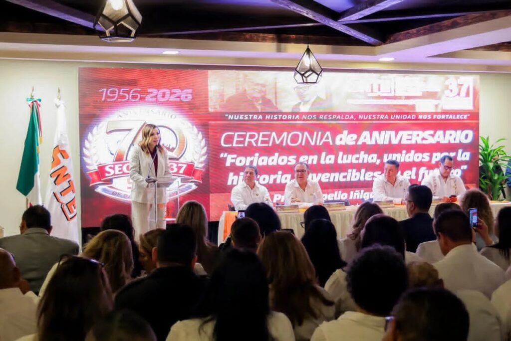 Mexicali.– Bajo la firme convicción de que la educación es eje central de la transformación, el Gobierno del Estado trabaja de la mano con el magisterio para saldar deudas históricas y dignificar la labor docente, destacó la gobernadora Marina del Pilar Avila Olmeda al encabezar el 70 aniversario de la Sección 37 del Sindicato Nacional de Trabajadores de la Educación (SNTE).
