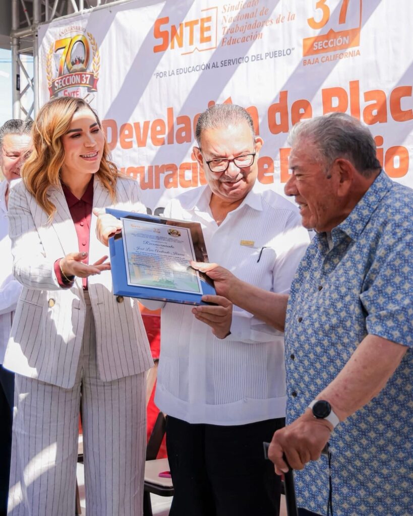 Al conmemorar las siete décadas de la Sección 37, la gobernadora reconoció también el liderazgo de su secretario general, Ampelio Iñiguez Arellano, así como la unidad entre gobierno y sindicato, que permite avanzar con honestidad en la construcción de una sociedad más justa, igualitaria y humana para todas las familias bajacalifornianas.